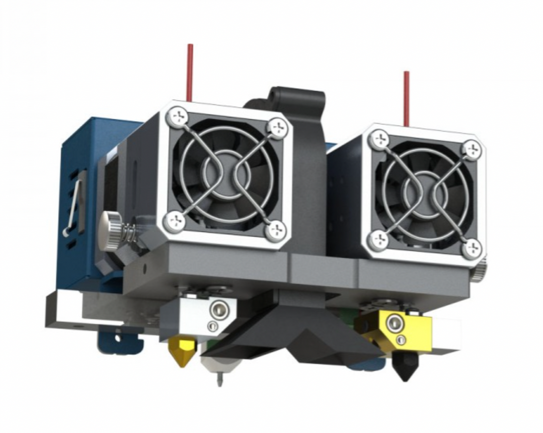 Dual extrusion: enables 3D printing with two different materials simultaneously, including soluble support.