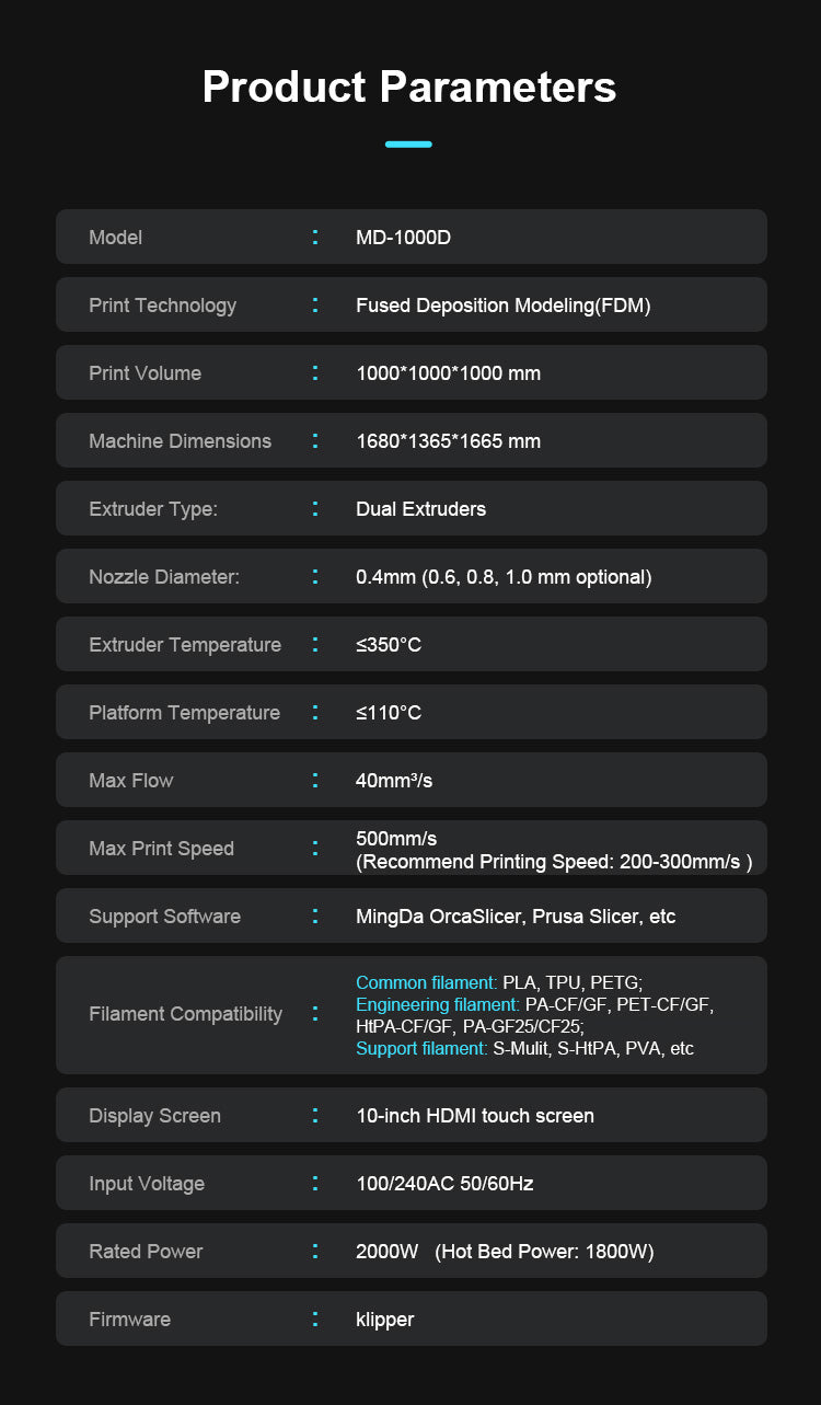 Shenzhen MINGDA Technology Co., Ltd. is a high-tech enterprise focusing on 3D printing R&D and production. Founded in 2012, it is committed to providing large-scale industrial 3D printing equipment and solutions to the world